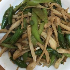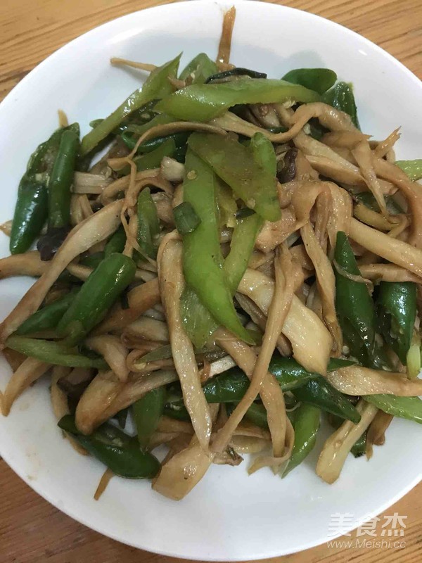 把杏鮑菇跟切好的辣椒一起倒鍋里翻炒