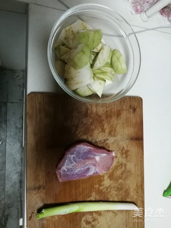 準(zhǔn)備主食材,茄子去皮切塊,大肉。