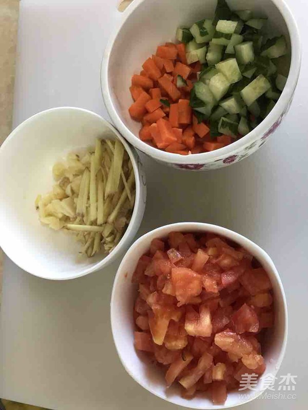 7.將準備的配菜丁倒入鍋里