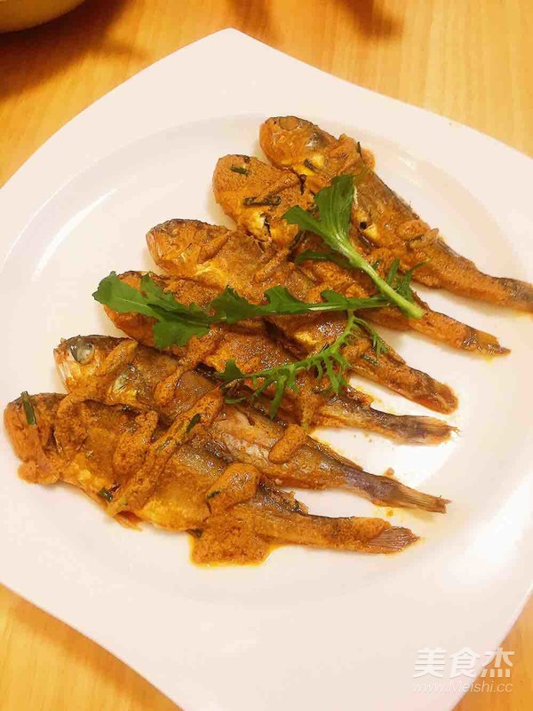把烤熟的小黃魚放入棒棒汁中,正反面都浸一下