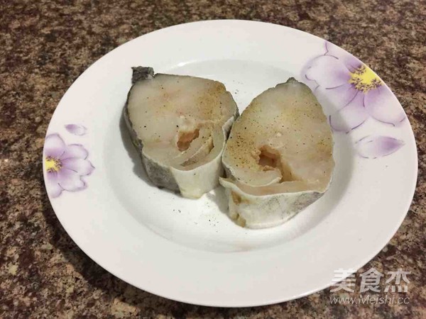 鱈魚加入鹽和胡椒粉腌制。