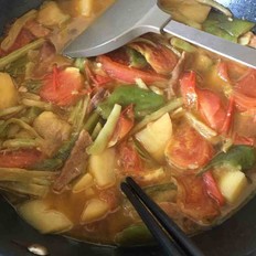 6.當(dāng)豆角5成熟放入土豆塊 繼續(xù)翻炒