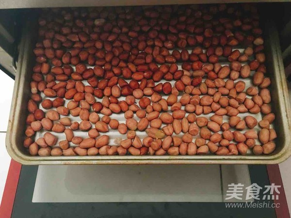 花生放入烤盤180度15分鐘,具體可以根據自己的烤箱溫度調整