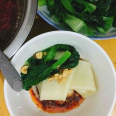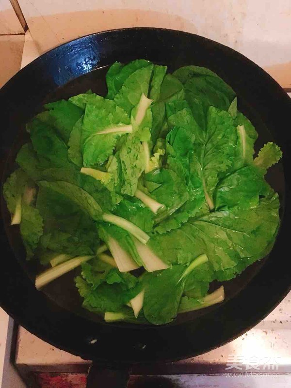 青菜放入水中焯熟,如果人少的話等到面片快要熟的時候放入青菜也可以