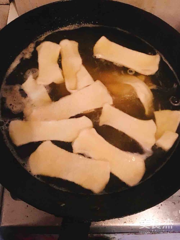 青菜炒好后下去面片,鍋中水滾開就可以了