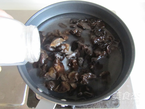 3.燒鍋水, 加入點鹽, 放入黑木耳進去焯一下后撈出;