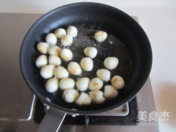 6.待到鵪鶉蛋微微發黃起虎皮后撈出備用;