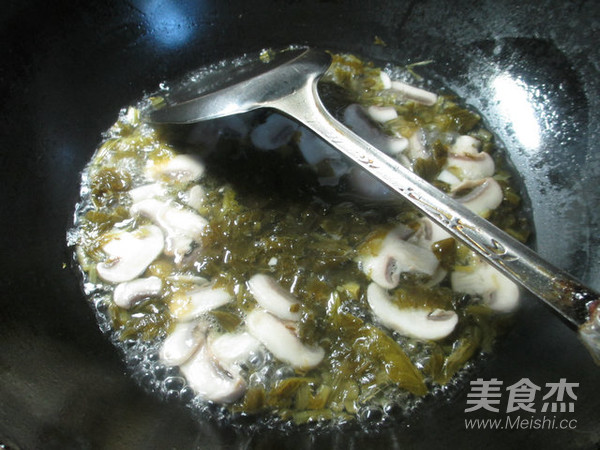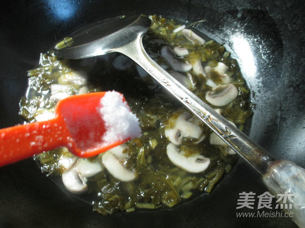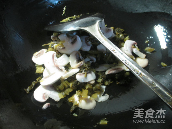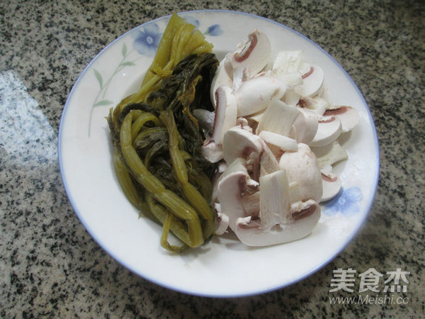 食材:雪菜(已清洗)、蘑菇(已清洗切片)