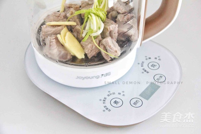 把排骨、蔥、姜片放入養生壺中。