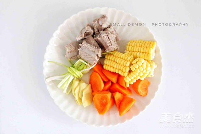 玉米切段,胡蘿卜切塊,姜切片備用。
