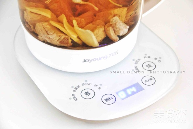 按#燉#鍵選擇藥膳功能,藥膳燈亮,然后按[預約]鍵設定時間。