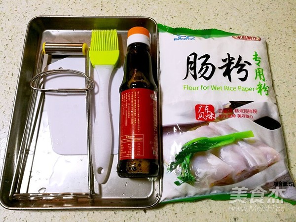 1.首先必須要有一套做腸粉的工具,托盤一個,刮板一塊,油刷一把,取盤夾一個。
