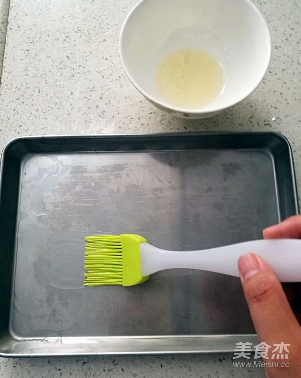 12.用油刷在托盤上刷上薄薄的一層食用油。