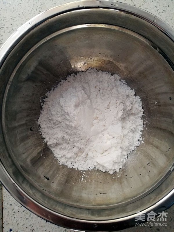 8.用一個干凈的盆倒入稱好的腸粉(如果沒有廚房秤也沒有關系,用一次性的紙杯,兩紙杯粉,三杯清水的比例混合)