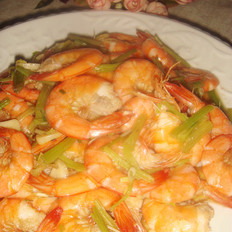 起油鍋先倒入芹菜、大蒜和辣椒翻炒至五分熟