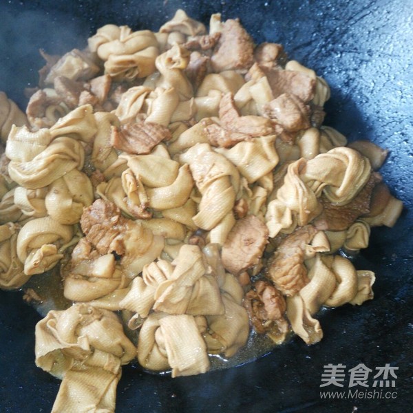 炒至起黃斑,放少許料酒,鹽,老抽翻炒。