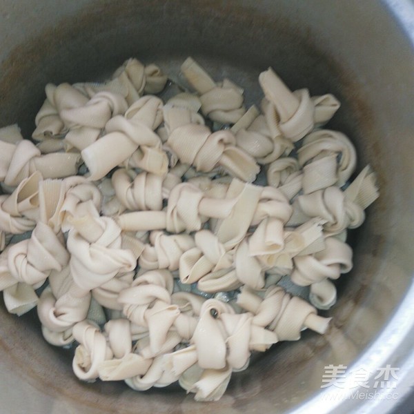 百頁(yè)切5CM左右的條,打成結(jié)。浸泡,撈出瀝水。