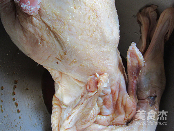 將買來的鴨子宰殺后洗凈,控一控表面多余的水分