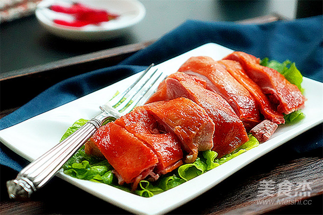 3、烤好后的鴨子整只擺盤也可以直接切塊吃,還可以片下鴨肉卷餅吃