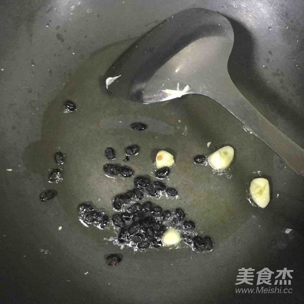 鍋內放油,油熱后放入蒜頭和豆豉爆香。