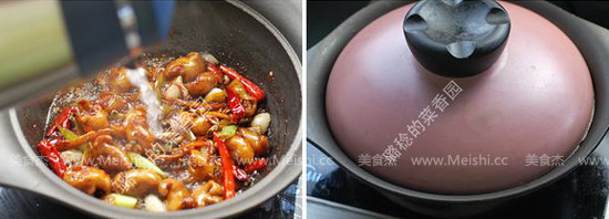 12.倒入開水,淹沒食材的1/2即可,翻勻,蓋上鍋蓋