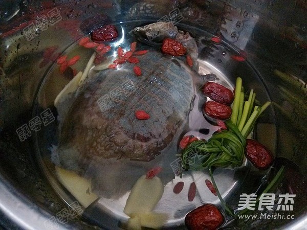 焯過水的甲魚放入電壓力鍋內膽