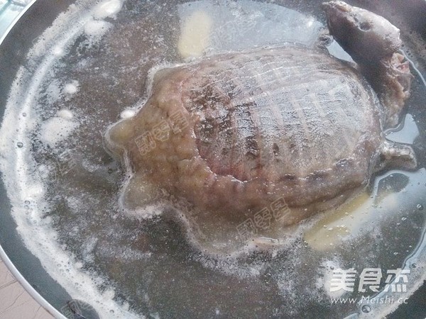 將甲魚放入開水鍋中燙一下
