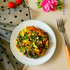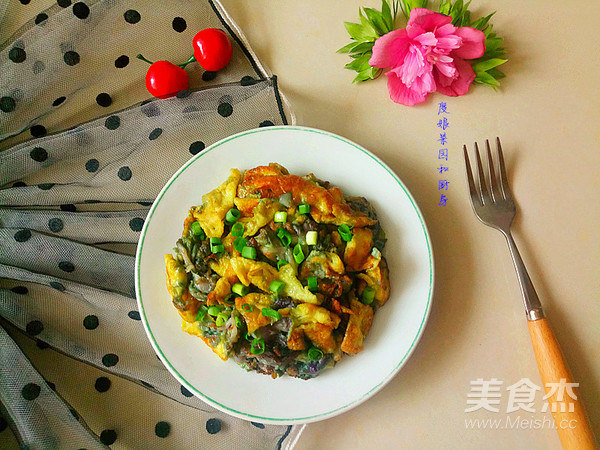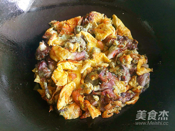 木槿花翻炒變色,加入雞蛋液。