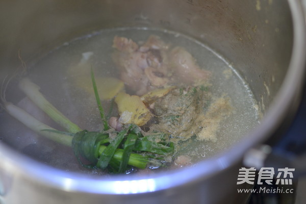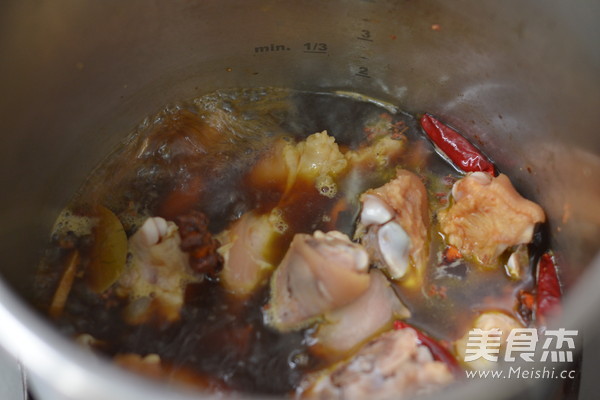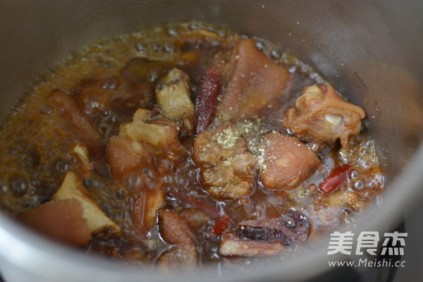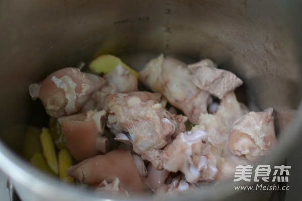 這時(shí)候倒入火開大,焯過水洗干凈的豬蹄