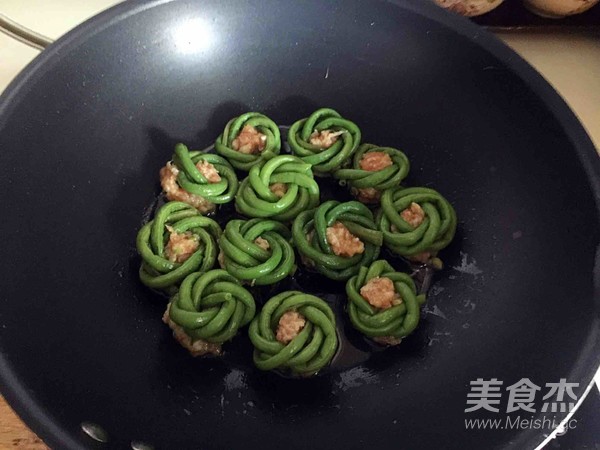 然后鍋里熱油后將肉末朝底小火燜煎至肉末表面金黃即可