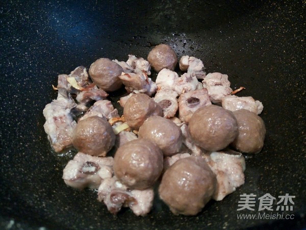 鍋里放少許油,爆香生姜蒜,放排骨翻炒幾下