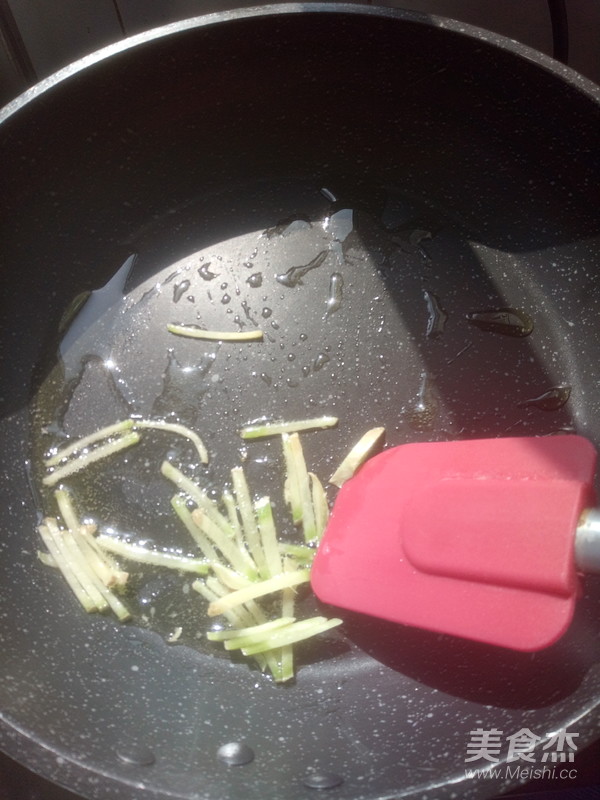 2.不粘鍋淋少許油,加入姜絲炒香。
