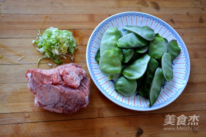 4.將瘦肉餡填進豬耳朵豆角里面。