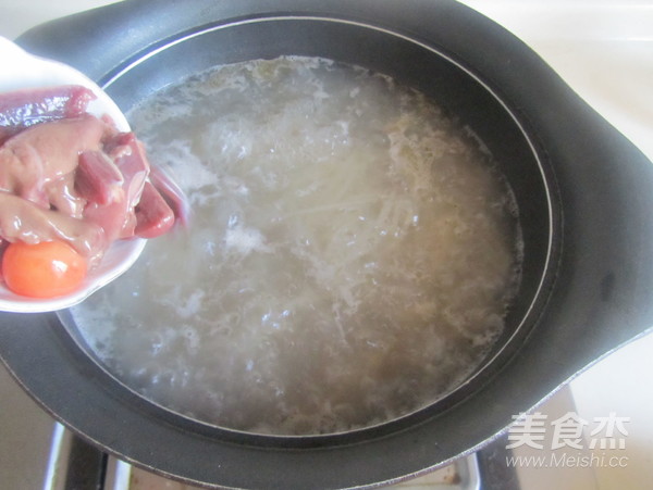 8.將鴨雜放入鍋中煮上一分鐘;