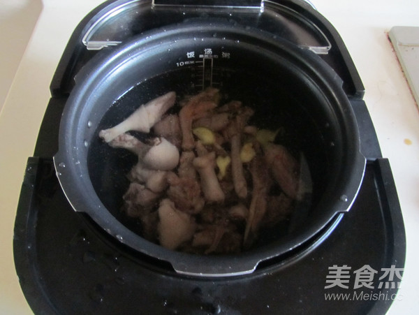 3.將處理好的鴨子、姜片放入鍋中, 加入適量的水;
