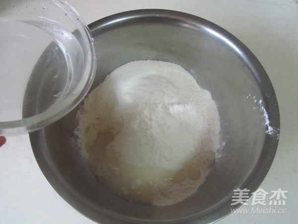 2.面粉加入適量的水, 和成稍微硬點的面團;
