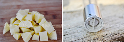 3.土豆切塊并加少許鹽拌勻,準備好研磨器