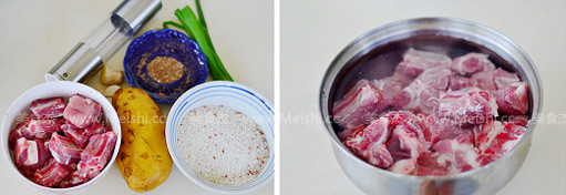 1.備好食材,排骨提前泡2小時,去血水