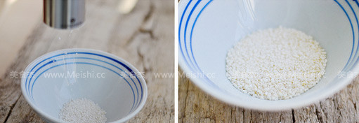 4.糯米泡水1小時晾干后,用研磨器2檔研碎