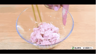 7.加入藕末、蔥末,繼續攪拌均勻。