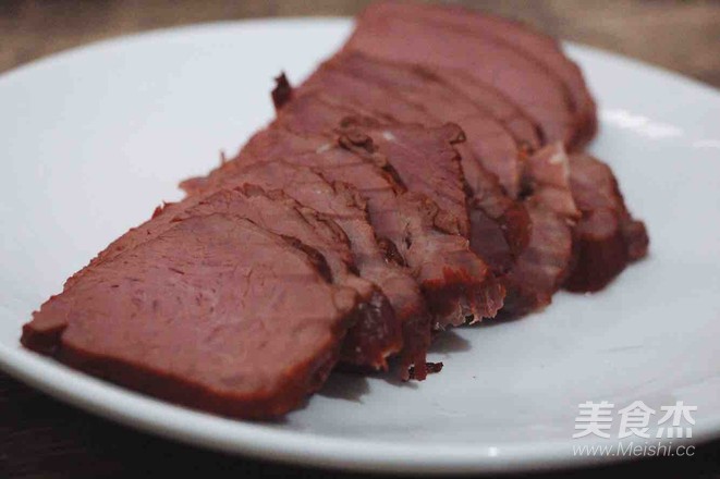 水開后,放入切好的鹵牛肉,加入2勺食醋、1勺生抽、1點鹽。