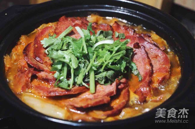 砂鍋熱油,大蔥切碎放進鍋內炒香