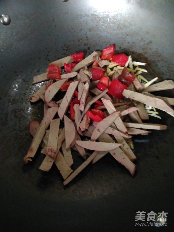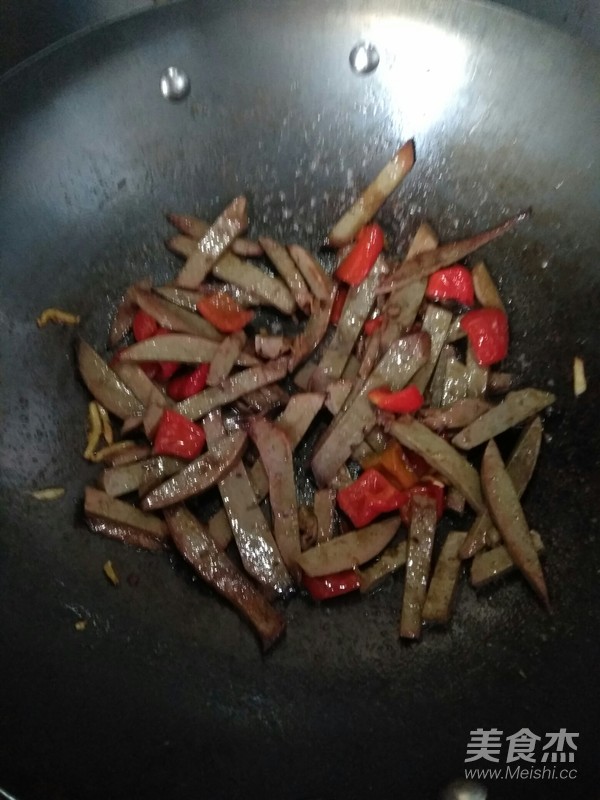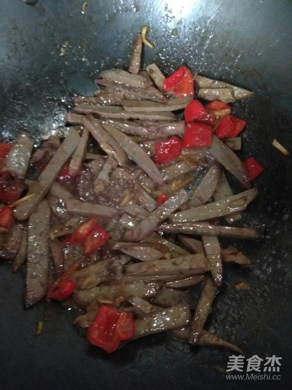 下入羊肝和青椒(青椒放時間長了,變成了紅椒