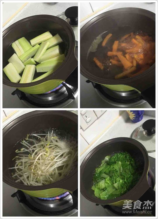 西葫蘆,胡蘿卜,豆芽,木耳分別過水川熟。