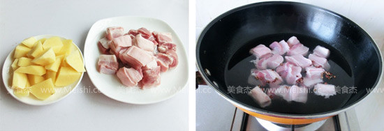 1.五花肉洗凈切塊,土豆去皮洗凈,切小塊