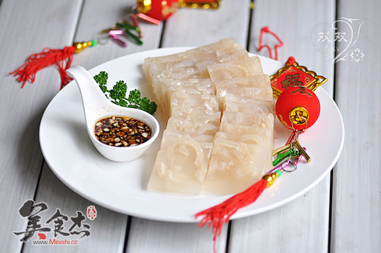 16.待豬皮凍涼涼,將其放入容器內,待其冷卻凝固即可