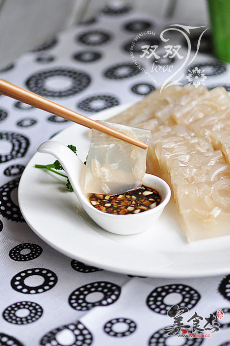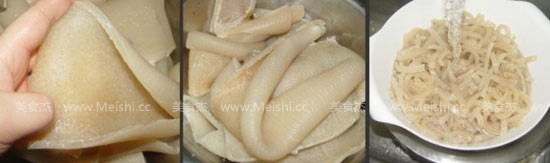 1.豬皮提前用清水浸泡。刮去表面的豬毛和雜質