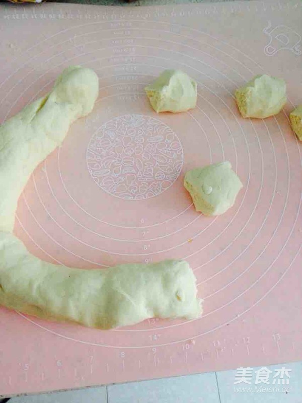 取出發(fā)酵好的面團(tuán),揉搓排氣,分成若干個(gè)小劑子