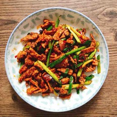 將肉推到一邊,放入郫縣豆瓣醬炒香