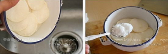 7.將白糖與白蘿卜片拌均勻,放15分鐘